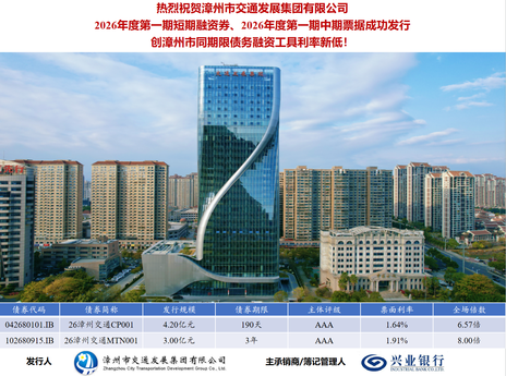 漳州交通集團成功發(fā)行7.2億元債務融資工具,票面利率創(chuàng)新低